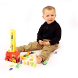 Le train est conçu pour un jeu sûr et facile : au contact d’un obstacle, il change de direction tout seul, et l’on peut également régler la direction en tournant la cheminée. La construction stimule la coordination œil-main, la pensée logique et l’imagination.