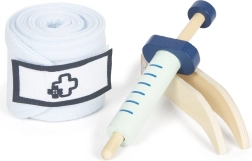 La seringue possède un piston mobile et le bandage se ferme avec du velcro. Les enfants profitent d’un jeu plus réaliste tout en exerçant leur motricité fine.