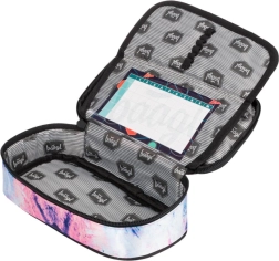 Trousse rigide avec volet intérieur et poche zippée, sac en matériau lavable avec cordons pour porter sur le dos et poche frontale zippée – le tout dans le design Abstract coordonné.