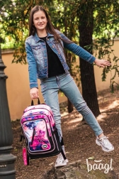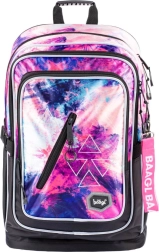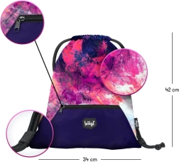 Un set scolaire stylé pour filles BAAGL Abstract comprenant un sac à dos spacieux à trois compartiments, un sac de sport pratique à porter dans le dos et une trousse rigide. Il offre un dossier ergonomique, une organisation généreuse, des éléments réfléchissants et des matériaux résistants dans un design moderne violet-rose avec détails. Idéal à partir de la 3e année de primaire.