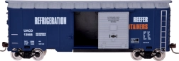 Ce wagon frigorifique pour chemin de fer miniature à l’échelle H0 1:87 reproduit fidèlement l’apparence des wagons conteneurs « reefer » réels. La livrée bleu-gris avec les marquages bien visibles REFRIGERATION et REEFER CONTAINERS, ainsi que les portes coulissantes fonctionnelles, renforcent le réalisme sur la voie.