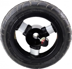 Le pneu avec valve amortit efficacement les irrégularités et améliore le confort de l’enfant ainsi que la maniabilité de la poussette sur diverses surfaces.