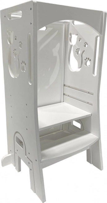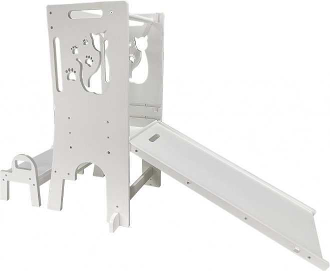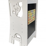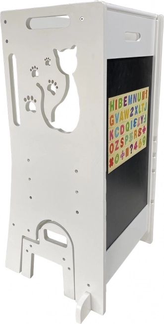 La tour d’apprentissage évolutive avec motif de chat est une aide sécurisée et polyvalente pour les enfants à partir de 18 mois. Elle permet aux enfants d’atteindre le plan de travail ou la table, de participer aux activités créatives et à la cuisine tout en restant sous votre surveillance. Grâce à sa conception multifonction, elle offre aussi du divertissement – elle inclut un tableau magnétique avec lettres et chiffres et, une fois dépliée, un toboggan. La tour possède une structure en bois robuste, une capacité de charge de 60 kg et un design moderne avec un chat.