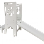 Encouragez l’autonomie et la motricité des enfants avec cette tour d’apprentissage pratique, conçue pour une utilisation sûre près du plan de travail de la cuisine ou d’un bureau. L’enfant se tient sur une plateforme stable entourée d’une barrière, accessible par une marche. La structure multifonction permet de transformer la tour en élément de jeu avec toboggan et offre aussi un divertissement créatif grâce au tableau magnétique.