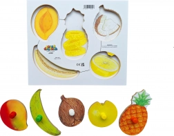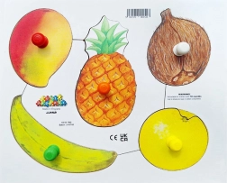 Puzzle en bois sur plateau pour enfants avec comme thème l'épluchage et la découpe des fruits qui offre des moments éducatifs et amusants. Contient des chevilles pour une prise facile et contribue au développement de la pensée logique.
