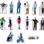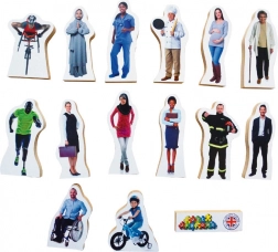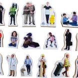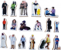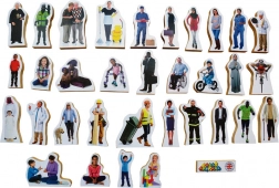 Ce set de 33 personnages réalistes et autoportants présente un éventail de tranches d’âge, de genres, de professions et de nationalités. Les figurines mesurent entre 7,5 cm et 10,5 cm de hauteur et sont fabriquées en panneau MDF de 1,5 cm d’épaisseur.