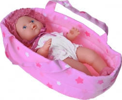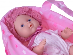 • Équipement complet : poupée, porte-bébé textile à étoiles et biberon.