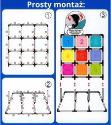 Le montage et le démontage sont rapides, et toutes les pièces se rangent dans un sac robuste. Grâce aux piquets en plastique, la cible peut être fixée dehors dans le sol, ce qui la rend parfaite pour le jardin, le terrain de jeu ou le gymnase. Les disques colorés sont légers et sûrs pour les enfants.