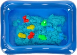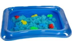 - 1 kg de sable cinétique bleu, 8 moules en plastique, bac à sable gonflable, pompe manuelle