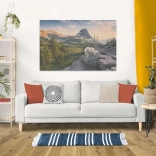 Une illustration détaillée mettant en scène des chèvres alpines sur des rochers avec un panorama montagneux offre un défi visuel attrayant et un résultat splendide.