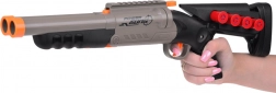 Cette imposante arme à double canon pour enfants est idéale pour les jeux d’action à la maison comme en extérieur. Elle se distingue par une fabrication en plastique de qualité, des accents de sécurité orange et des détails réalistes, y compris l’éjection des douilles vides lors du rechargement. Grâce au double canon, vous pouvez tirer une fléchette avec une légère pression sur la détente ou les deux à la fois avec une pression plus forte.