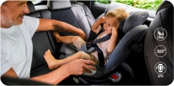La possibilité de tourner à 360° permet un accès pratique à l'enfant, quel que soit le sens de la position assise. Cela facilite le placement de l'enfant dans le siège et son retrait.