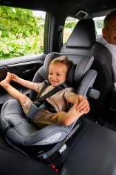 La fonctionnalité unique du siège auto est sa base pivotante, permettant un réglage facile dans le sens contraire à la marche (RWF) ainsi que dans le sens de la marche (FWF). Le siège est équipé du système ISOFIX avec indicateur de montage correct et d'une sangle Tether pour encore plus de sécurité.