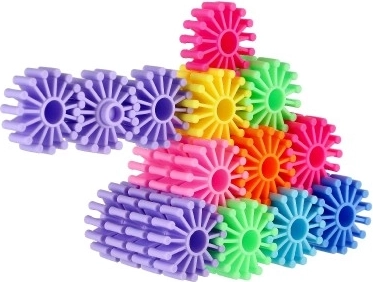 Ce jeu de construction est composé de 60 pièces colorées en plastique faciles à assembler. Il offre aux enfants des heures de divertissement créatif tout en leur apprenant les bases de la mécanique et de la pensée combinatoire.