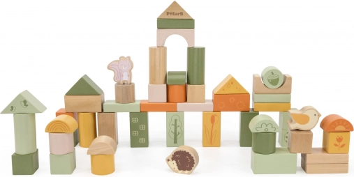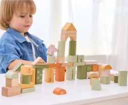 50 blocs en bois soigneusement travaillés dans des teintes douces avec des motifs d’animaux stimulent le jeu créatif et les bases STEM. La surface lisse et la fabrication de qualité garantissent durabilité et sécurité de jeu.
