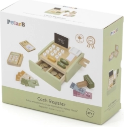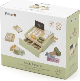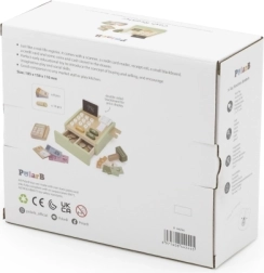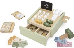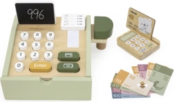 La caisse enregistreuse en bois dans une agréable couleur verte est un excellent jouet éducatif pour les enfants dès 3 ans. Elle propose des éléments fonctionnels comme un tiroir coulissant, des boutons, un scanner, un terminal pour carte et un rouleau de papier, qui imitent fidèlement une vraie caisse. Elle comprend aussi une mini ardoise double face pour noter les additions.