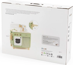 Inclus: casserole, poêle, assiettes, pots à épices, crochets pour ustensiles et étagère pour condiments. La cuisine encourage la responsabilité et l’autonomie – après le jeu, les enfants rangent facilement la vaisselle à sa place. Sa conception bien pensée la rend facile à assembler et totalement sûre pour les enfants dès 3 ans.