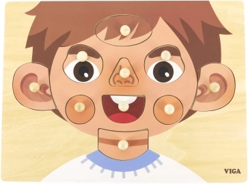 Ce puzzle en bois sur le thème du visage est un outil idéal pour les premières découvertes. Grâce aux pièces en bois solides avec poignées, les enfants acquièrent facilement les mots yeux, nez, bouche et oreilles tout en entraînant de façon ludique leurs compétences motrices.