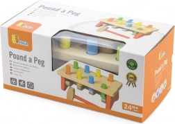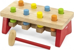 Le banc stable, les chevilles robustes et le maillet agréablement façonné en bois naturel assurent un divertissement sûr et durable. Le jouet favorise également la reconnaissance des couleurs et l’apprentissage des relations de cause à effet.