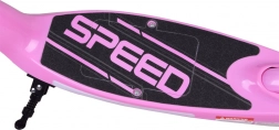 Surface texturée marquée SPEED maintenant le pied fermement. Frein électrique à la relâche de la gâchette et frein à pied pour un arrêt sûr.