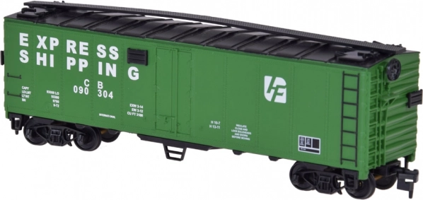 Inclus : un fourgon fermé « Express Shipping » et un wagon plat ouvert avec garde-corps – idéal pour créer des scènes de fret réalistes.