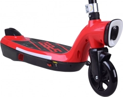 Trottinette électrique pour enfants, légère et robuste, offrant un éclairage LED multicolore, un moteur 12 V 45 W et une batterie 12 V 7–7,5 Ah pour une autonomie allant jusqu’à 1–2 heures. Elle atteint une vitesse de 9–11 km/h, supporte jusqu’à 50 kg et, grâce à son plateau antidérapant, à son frein électrique et à sa pédale de frein arrière ainsi qu’à sa sonnette, elle est sûre et amusante pour les sorties quotidiennes.