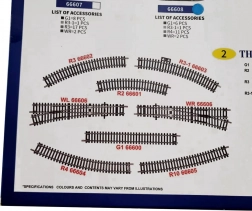 Le système ingénieux de raccords coulissants permet un montage rapide et précis sans desserrage pendant la circulation. La boîte contient des sections droites, des courbes et des aiguillages, vous permettant de composer aisément des tracés variés, du simple ovale aux plans plus complexes.