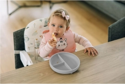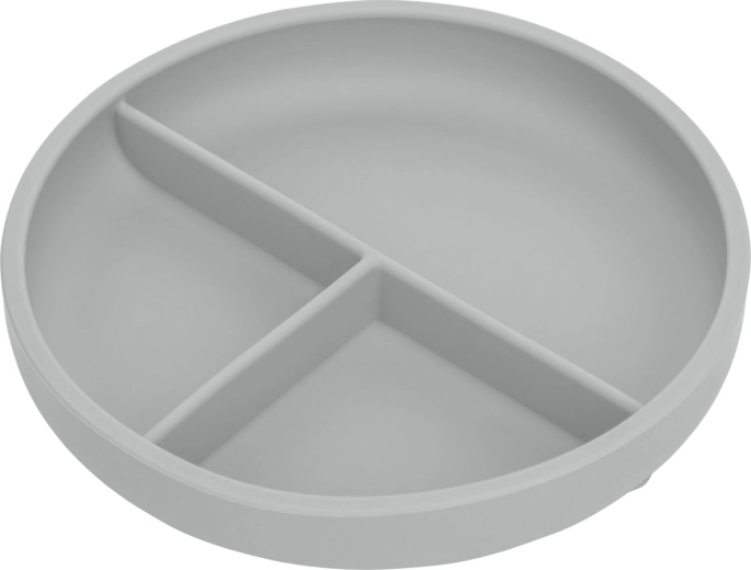 L'assiette en silicone grise moderne est conçue pour une alimentation autonome. Elle est douce et légère, ce qui en fait une compagne idéale non seulement à la maison, mais aussi lors des déplacements. Grâce à la présence d'une ventouse, l'assiette reste fermement en place, facilitant ainsi l'alimentation des jeunes enfants.