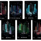 Nous vous présentons un cahier au format A4 au design unique inspiré des métropoles du monde, offrant non seulement du style mais aussi un usage pratique. Le cahier possède une reliure cousue, garantissant une longue durée de vie et une grande résistance. Grâce à la surface en relief de la couverture avec effets métalliques, il est à la fois élégant et plus résistant aux dommages.