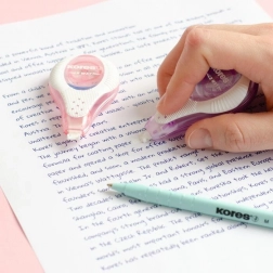 Le correcteur jetable Kores 2 Way Pastel garantit des corrections précises grâce à son ruban correcteur de 4,2 mm de large et 8 m de long.