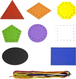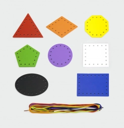 Les huit formes colorées et les huit lacets encouragent le tri, l'appariement et la nomination. Les enfants apprennent les couleurs et les formes géométriques de manière ludique.