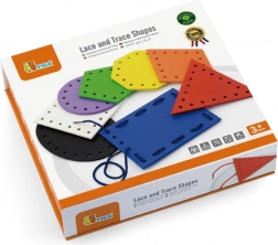 Cet ensemble soutient un apprentissage naturel dans l'esprit Montessori – l'enfant fait passer les lacets à travers des trous pré-percés, crée ses propres motifs tout en renforçant la préhension et la concentration. Les formes colorées invitent à l'exploration, les lacets sont faciles à tenir et l'activité occupe agréablement à la maison comme à l'école maternelle.