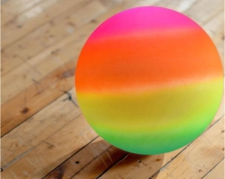 Balle en caoutchouc légère et résistante aux couleurs arc‑en‑ciel spectaculaires qui ravira les enfants, aussi bien à l’extérieur qu’en salle de sport. Elle se gonfle facilement, est imperméable et, grâce à ses couleurs vives, toujours bien visible.