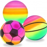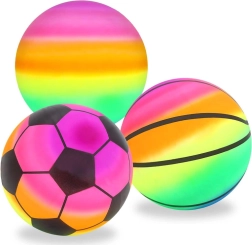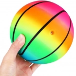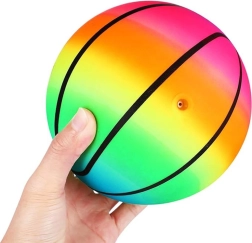 La balle en caoutchouc pour enfants d’un diamètre d’environ 23 cm est idéale pour les jeux du quotidien sur le terrain de jeu, au jardin, à l’école ou en vacances. Grâce à sa construction légère, elle se lance et se rattrape facilement ; les couleurs arc‑en‑ciel garantissent une excellente visibilité et le plaisir du mouvement. Le matériau est imperméable, vous pouvez donc vous amuser avec la balle près de l’eau ou dans la piscine.
