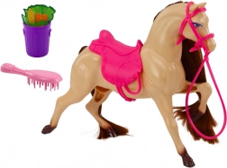 Cheval avec des détails réalistes et des éléments mobiles. Comprend une selle rose et une bride avec rênes pour un jeu authentique.
