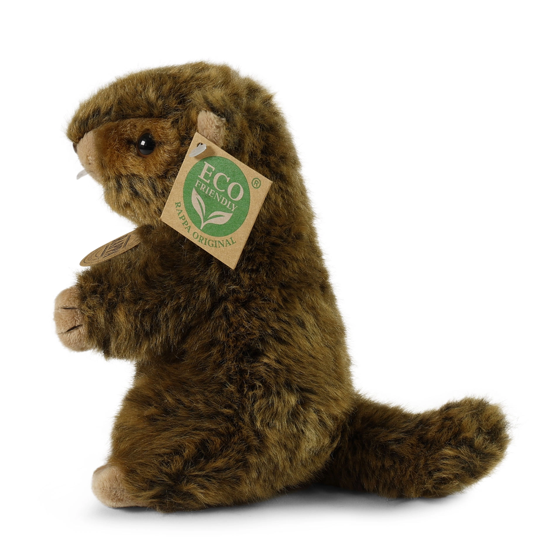 Adorable marmotte en peluche de la marque Rappa qui ravira les petits comme les grands amoureux des animaux. Elle est cousue à la main en peluche de haute qualité et possède un rembourrage éco-responsable en bouteilles PET recyclées. Grâce à son design réaliste et à son corps tout doux, elle est idéale pour les câlins comme pour un cadeau.