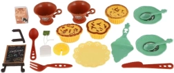 L’ensemble comprend des tasses, des assiettes, des couverts, un petit dessert et un panneau avec inscription – tout est prêt pour un service élégant et un jeu convivial.