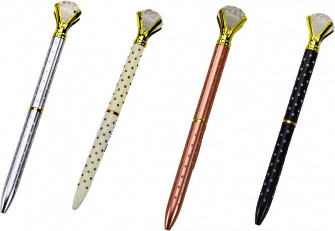Un stylo à bille élégant avec un grand « diamant » scintillant sur la partie supérieure apporte à votre écriture style et allure. Une encre bleue fluide et une pointe de 0,7 mm assurent une écriture douce et régulière. Disponible en assortiment de couleurs – blanc, noir, argenté et rose poudré.