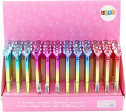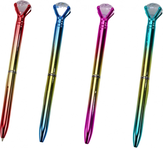 Élégant stylo à bille orné d’un grand « diamant » scintillant à l’extrémité, qui apporte un look luxueux à vos notes et à votre correspondance. Écriture fluide à l’encre bleue, pointe universelle 0,7 mm et corps doré avec accents colorés (rose, bleu, rouge, vert) en font un accessoire stylé pour le quotidien comme pour les occasions spéciales.