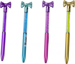 Un élégant stylo à bille avec un petit nœud décoratif et un corps transparent rempli de cristaux scintillants apporte une touche unique à votre écriture. Il dispose d’une encre bleue, d’une pointe de 0,7 mm pour une écriture fluide et est disponible en assortiment de couleurs – violet, turquoise, rose et doré.
