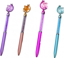 Stylo à bille élégant avec étoile décorative et petits «diamants» scintillants à l’intérieur. Écrit à l’encre bleue, avec une pointe de 0,7 mm pour une écriture fluide et précise. Disponible en assortiment de couleurs – violet, bleu, rose et or. Idéal pour l’école, le travail et comme cadeau.