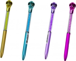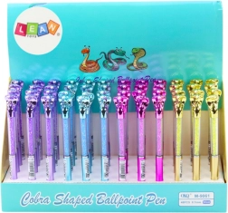 Ce stylo-bille stylé se distingue par une figurine originale de cobra sur la partie supérieure et un corps transparent dans lequel de petits « diamants » scintillent à chaque mouvement. Grâce à sa recharge bleue avec une largeur de trait de 0,7 mm, l’écriture est souple et lisible, idéale pour l’école, le bureau et la maison.