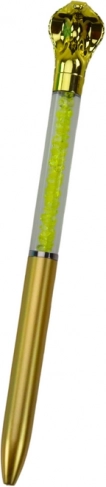 Stylo-bille élégant avec cobra décoratif et corps transparent rempli de strass scintillants. Offre une écriture fluide grâce à sa recharge bleue 0,7 mm et convient parfaitement au quotidien comme pour offrir. Disponible en plusieurs couleurs de corps.