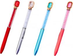 Stylo bille élégant avec corps transparent rempli de strass scintillants et un cristal fin à l’extrémité. Encre bleue pour une écriture fluide et régulière, idéal au quotidien et pour des cadeaux. Disponible en mix de couleurs de corps (rose, bleu, rouge, argenté).