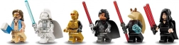 Profitez de duels dynamiques grâce à la paire de lance-projectiles à ressort, aux canons rotatifs et au cockpit amovible ainsi qu’à la tourelle de tir pour deux minifigurines. Six personnages exclusifs, dont Dark Jar Jar, Jedi Vador et un Luke « de plage », s’accompagnent de sabres laser cultes et d’accessoires thématiques (comme une caisse de lait bleu).