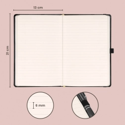 Au total, 172 pages sur papier jaune, idéales pour l’écriture quotidienne, la planification et les idées créatives. Grâce à son format 13 × 21 cm, il se range facilement dans un sac à main ou un sac à dos et devient un excellent compagnon pour le travail, l’école et les voyages.