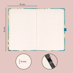 Grâce à ses détails pratiques, tout reste à portée de main : l’élastique maintient le carnet bien fermé, le porte-stylo garde vos instruments d’écriture en place et la poche intérieure accueille cartes de visite et feuillets libres. Les pages lignées en agréable papier jaune favorisent des notes claires et des entrées quotidiennes.