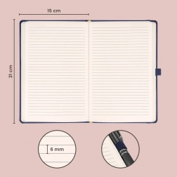 Le carnet ligné NOTIQUE en bleu foncé offre une couverture en balacron de qualité, particulièrement résistante à l’abrasion et à la saleté. Grâce à son format 15 × 21 cm, il se glisse facilement dans un sac tout en offrant suffisamment d’espace pour les notes quotidiennes.