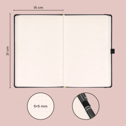 Le tramage à points offre une grande flexibilité pour écrire, dessiner et créer des mises en page claires. De plus, la surface se prête au marquage à chaud du logo, transformant facilement le carnet en cadeau d’entreprise stylé ou en support de présentation.