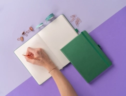 Découvrez un accessoire pratique et élégant pour le bureau comme pour l’école. Le carnet à points NOTIQUE Aprint allie design classique et élégance intemporelle dans une teinte verte appréciée. La texture fine de la couverture offre un rendu professionnel et se prête parfaitement au branding par marquage à chaud du logo d’entreprise.